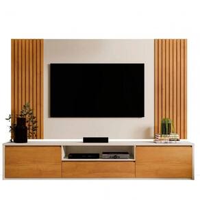 Conjunto De Painel Com Rack ex Para Tv De 65 Pol. Off White / lle Conjunto de Painel Com Rack ex Para TV de 65 Polegadas Mavaular Chegou o conjunto de Painel com Rack na Facilita Decor! O painel ex, que e um modelo incrivel par deixar sua sala de estar ainda mais linda e sofisticada. Um Painel lindo que contem detalhes ripados nas laterais, alem do painel ser centrado em MDF, ele suporta uma televisao de ate 65 polegadas. Para combinar com esse elegante painel, temos o Rack ex. O Rack possui 3 lindas gavetas que contem corredicas telescopicas, alem de tampo em MDF.