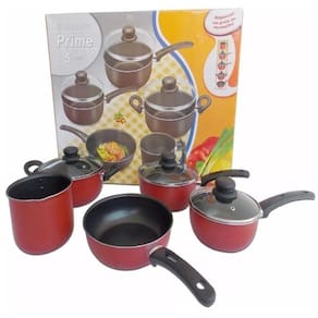 Conjunto Prime 5 peças com tampa de vidro. Revestidas com antiaderente e alças de baquelite.Glamour, sofisticação e requinte para sua cozinha. Um ótimo presente para todas as ocasiões.Prático e completo para todo tipo de preparo em seu fogão. Composição: 01 - Fervedor 14cm01 - Panela 16cm01 - Panela 18cm01 - Caçarola 20cm01 - Frigideira 20cm