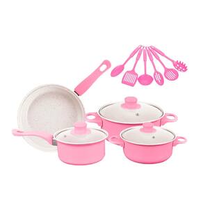 Praticidade e segurança para o seu dia a dia na cozinha. Este conjunto com 13 peças foi pensado para quem busca funcionalidade, resistência e facilidade no preparo das refeições. Com revestimento antiaderente, permite cozinhar com menos óleo e facilita a limpeza, tornando o uso mais saudável e prático.