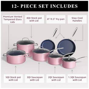Este conjunto de panelas premium é construído com forjamento, tornando o forte e durável, mas ainda leve e fácil de manusear. O revestimento saudável Duralon Blue é um revestimento cerâmico totalmente natural, livre de produtos químicos nocivos como PTFE, PFOA, grafite e cádmio, e não emite gases tóxicos em temperaturas mais altas. A cerâmica Geração 10 G10 é excepcional em todas as categorias, aquecendo rapidamente e liberando alimentos uniformemente sem esforço, além de ser extraordinariamente durável. A dureza do revestimento é avaliada em 9H, tornando o extremamente forte e resistente à abrasão, corrosão e ácido, o que significa que não lascará ou descolorirá e manterá suas propriedades antiaderentes por mais tempo. Cada panela é colada e reforçada com placa SS anti deformação na parte inferior para torná la pronta para indução, proporcionando distribuição de calor rápida e uniforme e retenção superior de calor em qualquer temperatura. Além disso, cada peça do conjunto de panelas é segura para uso em todos os cooktops, incluindo fogões elétricos e a gás, e pode ir ao forno até 500F para uma transição perfeita do fogão para o forno. As tampas premium resistentes a estilhaços incluídas neste conjunto incluem uma pequena abertura de ventilação para garantir que o vapor seja liberado com segurança enquanto você cozinha. As tampas são projetadas para caber em cada peça do conjunto de panelas para um cozimento mais conveniente. Este conjunto inclui uma panela de 4,66 litros com tampa, uma panela de 1,87 litros com tampa, uma panela de 2,80 litros com tampa, um caldeirão de 4,66 litros com tampa, uma panela de 7,46 litros com tampa, uma frigideira de 8 polegadas e uma frigideira de 9,5 polegadas. Cada peça é tratada com o revolucionário revestimento cerâmico Duralon Blue.
