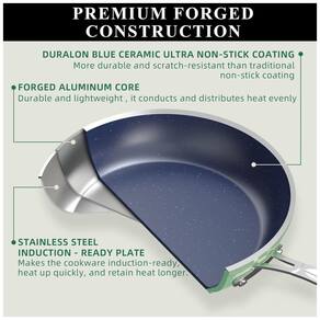 Este conjunto de panelas é construído com forjamento premium, tornando as fortes e duráveis, mas leves e fáceis de manusear. O revestimento cerâmico Duralon Blue é ecologicamente correto e ultraantiaderente, livre de produtos químicos nocivos como PTFE, PFOA, grafite e cádmio, e não emite gases tóxicos em temperaturas mais altas.