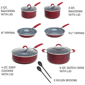 NONSTICK COOKWARE Revestimento cerâmico antiaderente para extrema proteção e durabilidade ALÇAS DE SILICONE A alça de silicone macia permanece fria ao toque, proporcionando um apoio confortável e confiante ALTO DESEMPENHO As panelas são feitas de uma base de indução de aço inoxidável, tornando as adequadas para todas as superfícies de cozimento QUALIDADE SUPERIOR O revestimento antiaderente é livre de PFOA e PTFE para cozinhar mais saudável e ecologicamente correto e possui tampas de vidro temperado com ventilação de vapor