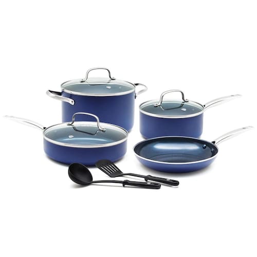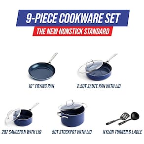 para utensílios de metal, o antiaderente cerâmico com infusão de diamantes da Blue Diamond é 5x mais duro e 10x mais duradouro do que os revestimentos tradicionais. Os diamantes são 4x mais condutores que o cobre, então o Blue Diamond aquece mais rápido e limpa mais facilmente. Livre de toxinas Livre de PFAS, PFOA, grafite e cádmio. Bases de controle de dobra Bases forjadas para serviço pesado evitam deformações, oscilações ou degradação ao longo do tempo Marca: Não Informado