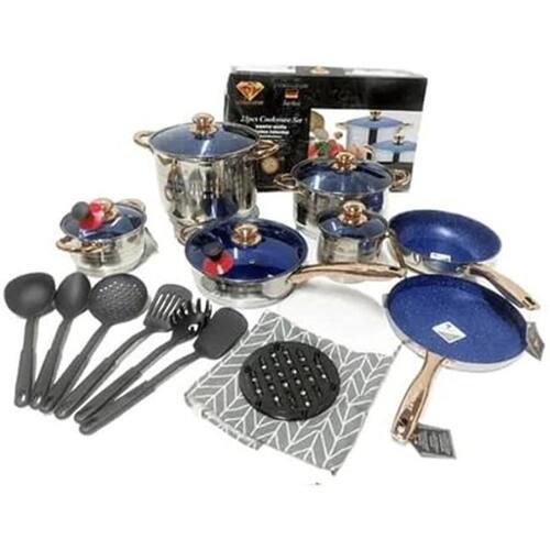 Conjunto de Panelas Antiaderente Teflon 23 peças com Avental Jogo de Panelas Alemãs - Aço Cirúrgico 23 Peças - Luxo Azul