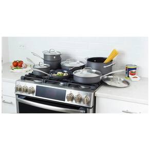 Conjunto de panelas de alumínio anodizado rígido de 12 peças com superfície antiaderente à base de cerâmica resistente a arranhões Superfície antiaderente de cerâmica à base de água não descasca, livre de PTFE e PFOA Condutividade de calor superior, resultando em menos uso de energia adequado para forno e frango Frigideira de Frite com tampa de Panelas com tampa de 1.8L Panela para todos os dias com tampa de 2.8L Forno holandês com tampa de 5.6L inserção de sistema de vaporização Produto construído de acordo com os padrões elétricos norte americanos. Desempenho versátil para forno e frango Marca: Não Informado
