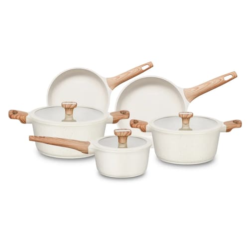 Se você busca por panelas que facilitam o seu dia a dia, resistentes e saudáveis, o Jogo de 5 peças da Titanium Natural é perfeito! Com a nova geração de antiaderente cerâmico: Cerâmic-Flon, as panelas são livres de metais pesados e elementos químicos prejudiciais à saúde, exigem menos uso de óleo, não deixam os alimentos grudarem e facilitam a limpeza. Os cabos e alças são revestidos com Soft-Touch, não esquentam e proporcionam um toque macio e confortável durante o uso. Possuem tampas de vidro temperado com saída para o vapor. Sua composição em alumínio injetado de 5mm de espessura, garante aquecimento uniforme e seu revestimento cerâmico marmorizado e assegura alta performance em antiaderência para o melhor desempenho durante o uso. Acabamento sofisticado, esse é pra surpreender os convidados, hein?!