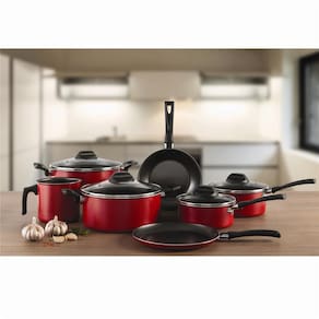 Com o Conjunto de Panelas Brinox Garlic 7001/101 você tem diversas opções de preparo. Seu revestimento antiaderente Pro-Flon é composto por 5 camadas que não deixa os alimentos grudarem e facilita na hora de limpar. Sua tampa com saída de vapor é produzida em vidro de alta qualidade e seus cabos são antitérmicos para um manuseio mais seguro do produto. Esse conjunto possui: Caçarola com Tampa 22 cm, Caçarola com Tampa 20 cm, Panela com Tampa 18 cm, Panela com Tampa 16 cm, Frigideira 18 cm, Panquequeira 22 cm e Leiteira 12 cm que deixam o preparo muito mais prático.