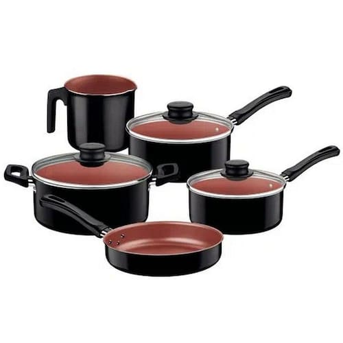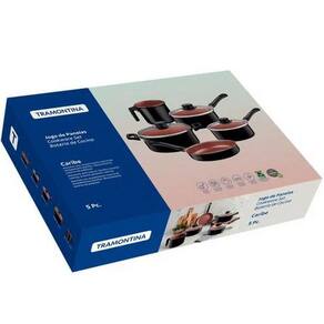 Descrição omplete sua cozinha com o jogo de panelas Tramontina Caribe com revestimento interno em antiaderente Starflon Max e externo de poliéster preto 05 peças. Ideal para preparar suas refeições diárias, ele tem peças produzidas em alumínio com espessura que proporciona o cozimento rápido e uniforme dos alimentos. Externamente elas são revestidas em poliéster e internamente em antiaderente Starflon Max, material que evita que os alimentos grudem em sua superfície. As panelas e a caçarola vem com tampas de vidro temperado com borda de aço inox que facilitam a visualização dos alimentos e facilitam o preparo. Os cabos, alças e pegadores são em materiais antitérmicos e oferecem maior segurança durante o manuseio!