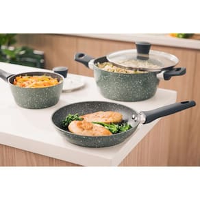 2. Economia de Tempo e Energia: Graças ao revestimento antiaderente de última geração, o Conjunto de Panelas Carmela Garden 3 Peças 8482 permite um cozimento mais eficiente, economizando tempo e energia.