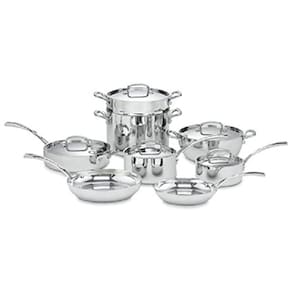 INCLUI panela de 1,5 litros com tampa, panela de 2,5 litros com tampa, frigideira de 3 litros, frigideira francesa de 8 polegadas, frigideira francesa de , forno holandês de 4,5 litros com tampa, panela de 8 litros com tampa, de inserção de macarrão DESIGN EXCEPCIONAL Desfrute de acabamento espelhado, aparência clássica e desempenho profissional A base encapsulada em alumínio aquece rapidamente e distribui o calor uniformemente eliminando pontos quentes MANIPULAÇÃO EXCEPCIONAL As alças frias são alças rebitadas de aço inoxidável sólido que permanecem frias no fogão e fornecem uma aderência segura e sólida LIMPEZA Lavável na máquina de lavar louça para uma limpeza fácil