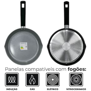 O revestimento cerâmico na cor cinza não só garante alta antiaderência (classificação A pelo Inmetro), como também é totalmente livre de metais pesados, sua espessura de 2,5 mm garantem aquecimento uniforme e durabilidade reforçada. Além disso, são compatíveis com todos os tipos de fogão, inclusive indução, adaptando-se ao seu estilo de vida e à sua cozinha.