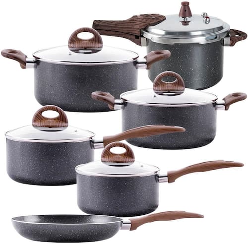 Conjunto de Panelas Brinox com Panela de Pressão Indução Granito Ceramic Life 6 peças