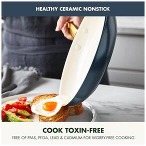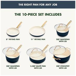 Conjunto de panelas Inclui frigideiras de 20 e , caçarola 2 litros com tampa, caçarola 3 litros com tampa, frigideira 2,5 litros com tampa e panela 5 litros com tampa O revestimento antiaderente de cerâmica saudável Thermolon da GreenPan é livre de PFAS, PFOA, grafite e cádmio, por isso nunca liberará gases tóxicos, mesmo se for superaquecido acidentalmente O revestimento reforçado com diamante desta coleção é incrivelmente durável Corpos de alumínio anodizado duro são incrivelmente duráveis e resistentes a arranhões Forno e frango até 315 C Marca: Não Informado