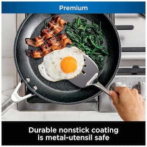 SEGURO PARA FORNO: Vá facilmente do fogão para o forno para finalizar o cozimento de carnes, dourar coberturas ou assar como você pode em ferro fundido. Tampas, alças e revestimento antiaderente são todos seguros para forno até 260°C.