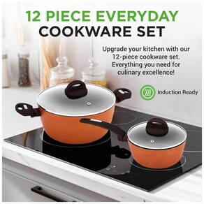 CONJUNTO DE 12 PEÇAS NutriChef oferece um conjunto de panelas antiaderentes de 12 peças que inclui panela de 1,5L com tampa, panela de forno holandês de 3,4L com tampa, panela de 2L com tampa, frigideira grande., fritadeira média. frigideira, frigideira pequena, concha de sopa, garfo para macarrão e espátula. REVESTIMENTO ANTI ADERENTE O conjunto de utensílios de cozinha antiaderente apresenta um revestimento antiaderente durável e duradouro para facilitar a liberação ou lançamento de alimentos, limpeza e cozimento saudável. Tem um exterior anodizado rígido que torna os utensílios de cozinha resistentes ao calor elevado. Pegas de alça de toque frio este conjunto de panelas possui alças ergonômicas de toque frio e também resistente ao calor, o que garante um cozimento confortável e . Oferece um elegante padrão de linha de cume metálico elegante, adicionando um toque elegante e moderno às panelas e frigideiras. TAMPAS TRANSPARENTES As panelas antiaderentes são equipadas com tampas transparentes de vidro temperado com orifícios de ventilação que permitem a saída do vapor. O conjunto de panelas distribui e retém o calor de forma eficaz para cozinhar uniformemente com temperatura máxima de 260C. PRONTO PARA INDUÇÃO Estas panelas e frigideiras são seguras para uso em balcões de gás, elétricos, cerâmicos e de indução. Feito de alumínio forjado reforçado com espessura de revestimento de 18 25um, multicamadas de 4,. Inclui utensílios de silicone de nylon resistente ao calor Marca: Não Informado