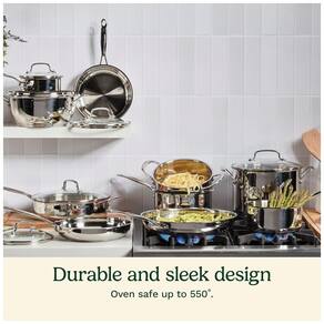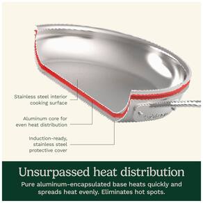 COZINHA E LIMPEZA Experimente o desempenho profissional com uma base encapsulada em alumínio que aquece rapidamente e espalha o calor uniformemente, eliminando quaisquer pontos quentes e proporcionando um desempenho versátil. A superfície de cozedura em aço inoxidável não descolora, não reage com os alimentos nem altera os sabores. O conjunto de panelas é para forno até 500 F e pode ser lavado na máquina de lavar louça, tornando a limpeza sem esforço DESIGN DURÁVEL E ELEGANTE Cada peça projetada com durabilidade e um acabamento espelhado elegante que fará você cozinhar o seu melhor absoluto. As marcações de medição proporcionam facilidade de uso sempre MANUSEIO EXCEPCIONAL Alças de aço inoxidável rebitadas, incluindo alças laterais e alças auxiliares, que são rebitadas profissionalmente para garantir uma vida inteira de equilíbrio perfeito