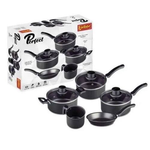 Conjunto de panelas com revestimento antiaderente é para quem gosta de praticidade, os alimentos não grudam na panela proporcionando facilidade também na limpeza. Proporciona um cozimento rápido e uniforme e pode ser utilizada no fogão à gás ou elétrico. As panelas têm um revestimento interno antiaderente resistente à abrasão, que serve como uma aderência em qualquer superfície e propaga o calor com maior eficiência. Possui tampa de vidro temperado de alta resistência com saída de vapor e alças anatômicas facilitando o manuseio.