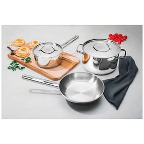 Todas as peças contam com fundo triplo, que distribui o calor de forma homogênea, reduzindo o tempo de cozimento e, consequentemente, economizando energia. Todas as panelas e caçarolas vem com tampa com saída de vapor e encaixe perfeito, que seus alimentos sejam cozidos de forma uniforme e eficiente.