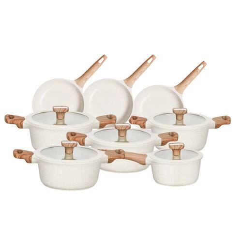 Conjunto de Panelas Titanium Natural Bege MTA - 8 Peças Dê um toque de sofisticação, praticidade e saúde à sua cozinha com o Conjunto Titanium Natural Bege MTA. Com revestimento interno antiaderente de alta performance, as panelas proporcionam preparo de alimentos com menos óleo, além de facilitar a limpeza no dia a dia. O design elegante na cor bege com cabos de efeito madeira une estilo e funcionalidade, deixando sua cozinha ainda mais charmosa. As tampas em vidro temperado com saída de vapor permitem acompanhar o cozimento sem perder nutrientes e sabor, garantindo mais eficiência e segurança. Esse conjunto completo é ideal para quem busca qualidade, durabilidade e beleza em cada detalhe. Diferenciais: Revestimento antiaderente resistente e fácil de limpar Cabos e pegadores com efeito madeira: estilo + conforto térmico Tampas em vidro temperado com saída de vapor Design sofisticado que valoriza a cozinha Kit completo que atende diferentes necessidades no preparo das receitas Conteúdo do Conjunto 8 peças : 02 Frigideira 24 cm 01 Frigideira 20 cm 02 Caçarola 20 cm com tampa de vidro 02 Caçarola 24 cm com tampa de vidro 01 Panela 16 cm com tampa de vidro Ideal para: Famílias que buscam praticidade e sofisticação, e para quem deseja cozinhar com estilo, segurança e qualidade, desde as refeições do dia a dia até os momentos especiais. Marca: Não Informado