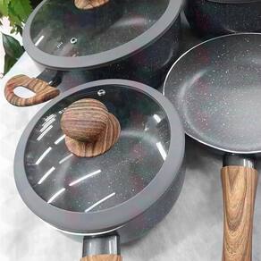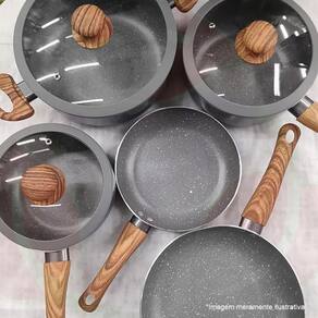 Conjunto de Panelas Yafo Revestimento Cerâmico 5 pçs Granito Cinza A1005-C03 - Lehaví - Dorémi Casa e Decor