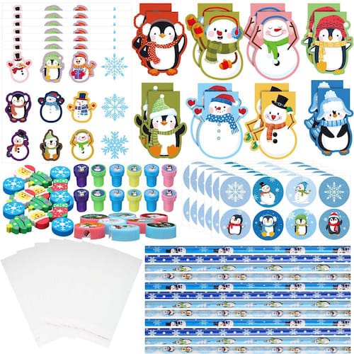 Como estudante, você pode trocar adesivos de atividades de Natal, apontador de lápis, borrachas, conjunto de borrachas como presente de Natal e preparar todos os presentes atenciosos de uma só vez.