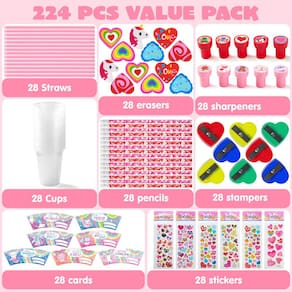 Conjunto de papelaria JOYIN de 224 peças para o Dia dos Namorados com copo e cartão, troque presentes para crianças com uma variedade de artigos de papelaria e prêmios de recompensa de fim de ano. Conjunto de papelaria de dia dos namorados com tudo incluído: eleve suas festividades do Dia dos Namorados com nosso extenso conjunto de papelaria de 224 peças, para trocas e criação de memórias duradouras. Aproveite a variedade com 2 desenhos de lápis, 7 designs de cartões, 8 designs de adesivos, 6 designs de borracha, 10 designs de estampador e uma escolha de 3 apontadores. Cada peça é uma expressão de amor. Copo encantador para bebidas apreciadas: nosso conjunto inclui uma xícara deliciosa, do tamanho de 3,8* 4 polegadas com um volume de 12 onças, fornecendo o recipiente para bebidas durante o Dia dos Namorados. Brinquedos envolventes com cartões: A combinação de papelaria e brinquedos proporciona uma troca agradável e interativa no Dia dos Namorados. Uso versátil: além do Dia dos Namorados, nosso conjunto de papelaria é para presentes de festa e prêmios de Natal. Promova o aprendizado com nosso conjunto de papelaria. Incentive as crianças a se expressarem por meio da escrita e da arte enquanto aproveitam as festividades. Materiais seguros e duráveis: Pensando na segurança, nosso conjunto de papelaria é feito de materiais de alta qualidade, garantindo durabilidade e segurança para crianças.