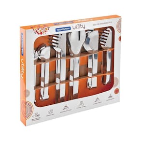 Uma mesa bem apresentada é o primeiro passo para tornar uma refeição inesquecível. Para isso, você pode contar com a Linha Utility da Tramontina, que oferece itens que podem ir desde o preparo dos alimentos até a mesa, para servir amigos e familiares nas refeições, seja ela qual for. Esta é uma Linha completa e por isso vai te acompanhar diariamente na cozinha. Com utensílios feitos inteiramente de aço inox, sua durabilidade será muito maior que itens feitos de outros materiais, sem contar a elegância de ter essas peças de acabamento em alto brilho completando a sua mesa. Mas lembre-se que não é recomendado seu uso em panelas com revestimento antiaderente, pois o inox pode causar um atrito que danifica alguns revestimentos. Características: Marca: Tramontina Código do Fabricante: 66800103 Linha: Utility Cor: Inox Material: Aço inox Conteúdo: 1 Pegador de Gelo, 2 Pegadores Multiuso, 2 Pegadores para Massa e 1 Pegador Universal Compatível com Lava-louças: Sim