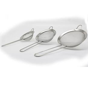 A Albema traz praticidade ao dia a dia em sua casa. Produtos de ótima qualidade que deixarão sua cozinha equipada e com o toque de charme que só os produtos Albema oferecem. Conjunto de Peneiras com 3 Peças em Aço Inoxidável. Kit contém 3 Peças sendo: 1 Peneira de 8 cm 1 Peneira de 10 cm 1 Peneira de 12 cm Marca: Albema Uso: Doméstico Material Base: Aço inox Material Cabo: Aço inox Medidas embalagem: 30x14x7cm Peso: 70g Código do produto: AL1837 OBS.: Imagens meramente ilustrativas. As tonalidades podem variar. Marca: Não Informado