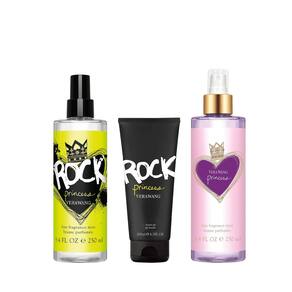 — O conjunto inclui: Vera Wang Rock Princess Fragrance Mist 8,4 fl oz e gel de banho 6,7 fl oz e Princess Fragrance Mist 8,4 fl oz.