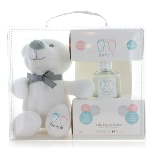 O conjunto inclui um Baby Eau De Senteur de 2 onças e um ursinho de pelúcia. Sem álcool. Testado sob controle pediátrico. Os cheiros são muito importantes em nossas vidas, especialmente nas de nossa infância. Criado com amor, o Eau my BB é uma linha de produtos solidários para bebês. Sua fragrância fresca, pura e leve envolve o bebê em um mundo de ternura. Nota de topo: rosa, nota de coração: violeta e nota de base: baunilha.