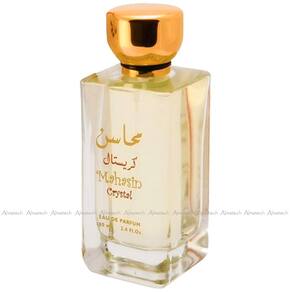 Conjunto de 2 peças Lattafa Perfumes Mahasin Crystal para mulheres (spray Eau de Parfum de 3,4 onças e 1,7 spray desodorante) — Mahasin Crystal da Lattafa Perfumes é uma fragrância floral amadeirada de almíscar para mulheres — As notas principais são maçã, groselha preta, tangerina e bergamota — As notas médias são frésia, jasmim, lírio do vale e gardênia — Base as notas são baunilha, sândalo, âmbar e almíscar