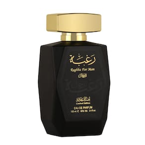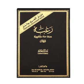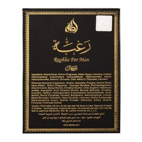 Conjunto de 2 peças Lattafa Perfumes Raghba for Men (spray Eau de Parfum de 3,4 onças mais 1,7 onças de spray desodorante) — O conjunto contém: spray Eau de Parfum de 3,4 onças e spray desodorante de 1,7 onças — Perfume Raghba For Man Eau de Parfum da Lattafa Perfumes é uma fragrância fresca e amadeirada com notas orientais - Notas principais: limão, verniz Bena e Íris - Notas médias: violetas - Notas de base: sândalo, âmbar, cedro e couro - Uma fragrância linda e fresca do dia a dia que é muito adequada para o verão