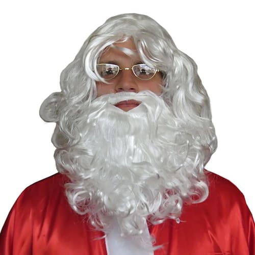 O conjunto de peruca ondulada e barba são adequadas para o estilo do Papai Noel.