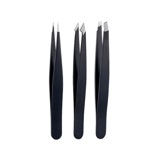 Adequado para: pêlos encravados e selvagens\ nUso: sobrancelha, depilação\ Fácil de usar para extensão de cílios. Para conserto de relógios, fabricação de joias e conserto de móveis. Tamanho portátil, fácil de transportar. Adequado para uso intenso ou doméstico. Item: Pinças\ nTipo de ponta: ponta inclinada/ponta pontiaguda/ponta plana\ nMaterial: aço inoxidável\ nComprimento das braçadeiras: 9,6 cm/3,74 polegadas”\ nCor: rosa. Quantidade preta: 3 unidades