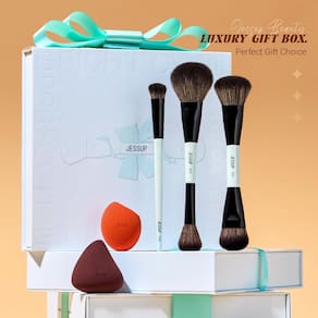 - Design exclusivo: o conceito de pincel de maquiagem de duas pontas combina engenhosamente versatilidade e conveniência em uma única ferramenta. Esta dupla funcionalidade não apenas conserva espaço, mas também facilita a alternância entre produtos ou técnicas de aplicação sem a necessidade de procurar outro pincel. Além disso, o pincel de ponta dupla é particularmente ideal para retoques em movimento ou viagens, garantindo que você tenha as ferramentas essenciais para uma aplicação facial inteira dentro da metade do espaço.