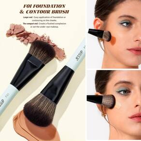 Pincel de base e contorno de ponta dupla F01: este pincel de base e contorno de ponta dupla inclui dois aplicadores distintos projetados para mistura perfeita e construção de base e contorno para alcançar um acabamento natural semelhante à pele.