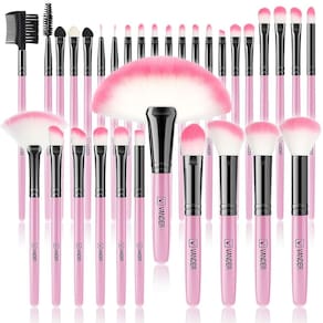 Apresentações: Domine as técnicas profissionais de maquiagem com nosso conjunto de pincéis cosméticos profissionais com cabo de madeira de 32 peças! Extremamente macio e macio, inclui 32 pincéis feitos para aplicar perfeitamente sua maquiagem favorita. Essas escovas usam fibras de alta qualidade, hipoalergênicas. E eles misturarão a quantidade ideal de pigmento para obter sempre um resultado perfeito. Além disso, cada pincel é projetado com uma alça de madeira resistente e antiderrapante para aplicação precisa. E é fácil de lavar para usos repetidos. Bonito e elegante, fácil de transportar. - Conjunto profissional de pincéis de maquiagem de 32 peças: cubra 6 pincéis grandes de maquiagem kabuki e 26 pincéis de maquiagem de precisão para sombras, rugas, corretivo, blush, base, pós prensados ou soltos, iluminadores e sobrancelhas. Ideal para aplicar, misturar e sombrear produtos. - Cerdas macias e confortáveis: as cerdas do conjunto de pincéis de maquiagem VANDER são feitas de material sintético premium. As cerdas são ricas, macias e fofas, conseguem agarrar melhor o pó e se espalhar uniformemente no rosto, o que torna sua maquiagem muito mais natural. - Pincéis de sombra Right: este conjunto essencial de pincéis de maquiagem inclui pincéis de sombra, delineador de olhos e pincel de mistura. Diferentes formas e tamanhos das cerdas oferecem uma variedade de aparência visual. Perfeito para aplicar sombra, definir, misturar e borrar, cria os olhos esfumaçados perfeitos. - Material de alta qualidade e durabilidade: vários processos de fixação fortes garantem que a alça e a ponteira de metal estejam firmemente conectadas, e que o cabelo seja à prova d'água e não caia da ponteira de metal, mantendo-o para uso duradouro. - Ótimo para iniciantes: destinado a iniciantes e entusiastas da maquiagem, pois o kit de pincéis de maquiagem é fácil de usar e de qualidade superior a um preço acessível, um sortimento completo que permite que você mantenha sua maquiagem.
