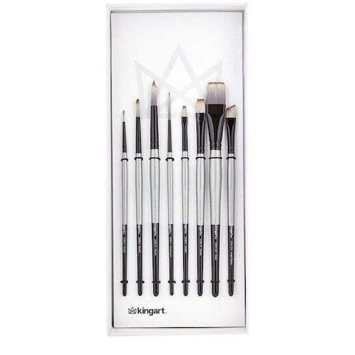 KINGART Pincéis de artistas multimídia premium da série Stellar, ferramentas de pintura para óleo, acrílico, aquarela e guache, caixa de presente, conjunto de 8 pincéis