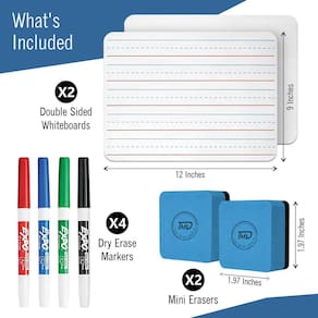 Conjunto de quadro branco e marcadores apagáveis a seco, 2 quadros apagáveis a seco, quadro branco 4 marcadores apagáveis a seco de ponta fina e 2 mini apagadores a seco, quadro branco pequeno e marcadores apagáveis a seco com borracha
