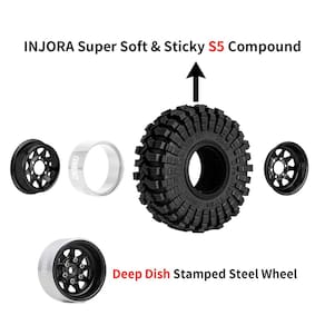 - Pneus de esteira de 62* 22 mm e 1,0", feitos no composto supermacio e pegajoso INJORA S5.