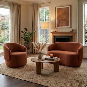 Conjunto de Poltrona + Namoradeira Decorativa Sala Estar Orgânica Beatriz Boucle Terracota- Montanaris Decor - Terracota | Laranja