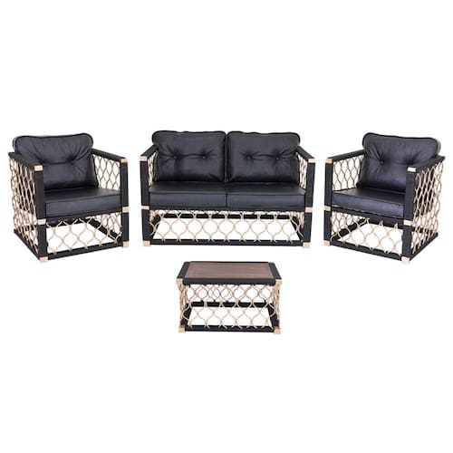 Itens Inclusos: 01 Namoradeira Trama Tampo de Madeira 02 Poltronas Trama na Corda Náutica 01 Mesa de Centro com Tampo de Madeira Cumaru