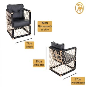Característica: Peças produzidas em alumínio com pintura eletrostática e revestidas em Corda Náutica com proteção UV. Suporta até 200 kg Nossos produtos são artesanais e podem ocorrer variações na medida de até 2cm. As cores dos produtos podem variar de acordo com o ambiente e com a iluminação em que as fotos foram tiradas. Ideal para ambientes Internos, varandas, edículas, área de lazer, salas de estar, sala de jogos, churrasqueiras, sala de filme, recepção, sala de espera entre outros. ESPECIFICAÇÕES TÉCNICAS: