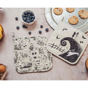 - COLECIONÁVEL OFICIAL DA DISNEY: Se você estiver cozinhando, assando ou grelhando, você pode tornar cada refeição assustadoramente memorável. Assuste as coisas com este conjunto de porta-panelas oficialmente licenciado, inspirado em The Nightmare Before Christmas, de Tim Burton.