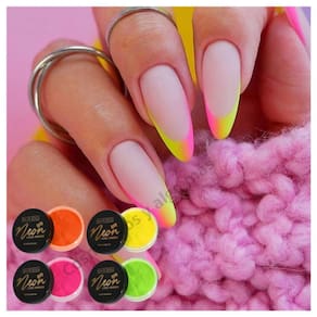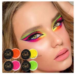 Sombra de arco-íris de néon de cores brilhantes. Sombras de olhos altamente pigmentadas e vibrantes SUPER. Ele cria a aparência perfeita com nossos pigmentos neon. A pigmentação solar é morrer. Cada cor vem embalada em frascos transparentes individuais de 6 gramas e com sua esponja de aplicação individual. Você pode levá-lo aonde quer que vá, para poder fazer retoques rápidos a qualquer hora e em qualquer lugar. Um item essencial no kit de maquiagem. Ainda mais surpreendente é um pó de néon que também é na realização de belos desenhos para suas unhas, dando aquele toque de cor.