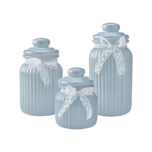 Conjunto De Potes Hermético Lace Azul Bebe Com 3 Peças Vidro -