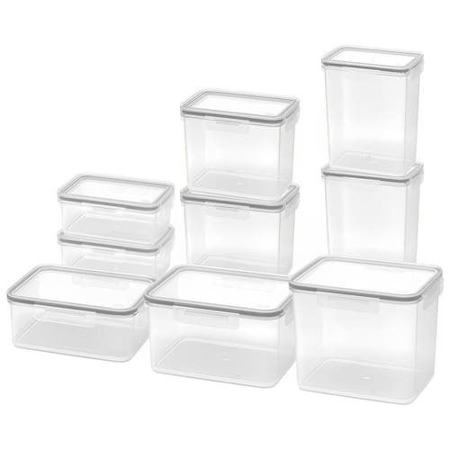 Conjunto de Potes Herméticos Hug 9 Peças Transparente Coza - Itens Inclusos