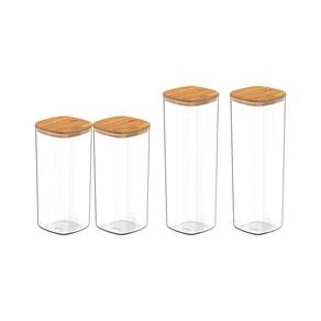 Conjunto de Potes Herméticos Keep 4 Peças Transparente com Tampa de Bambu Ou - Na sua casa