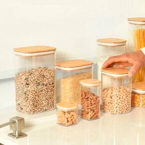 Conjunto de Potes Herméticos Retangular Keep 3 Peças Transparente com Tampa de Bambu OuOs Potes Herméticos Keep garantem organização e cuidado para os seus alimentos, trazendo mais tranquilidade e bem-estar para a sua rotina. A tampa de bambu promove a sustentabilidade de um material 100% renovável, e traz sofisticação para decorar a sua casa.