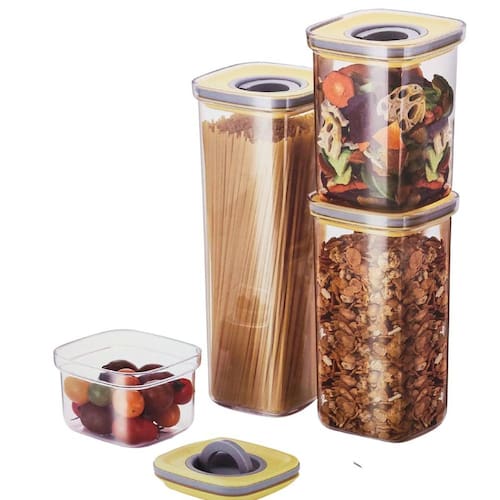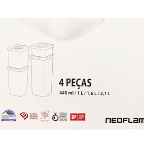 Conjunto De Potes Mantimentos Empilháveis com Tampa Vedação Apresentamos o conjunto de 4 potes dos Estado Unidos da linha Smart Seal Ringo da Neoflam é a solução definitiva para suas necessidades de armazenamento de alimentos. Graças à sua tecnologia hermética de última geração, esses potes são absolutamente à prova de vazamento, preservando a qualidade dos seus alimentos por mais tempo. Com uma tampa intuitiva e um anel giratório de fácil movimentação, você terá toda a praticidade que precisa para abrir e fechar os potes sem esforço. Além disso, sua capacidade empalhável oferece a forma de armazenar os potes de forma organizada, ocupando menos espaço na sua cozinha. Oferecendo a excelente vedação e da versatilidade dos potes Smart Seal Ringo da Neoflam o que simplifica sua vida na hora de armazenar alimentos. Conjunto de 4 potes sendo: 1 de 440ml; 1 de 1L; 1 de 1,6L e 1 de 2,1L Marca: Não Informado